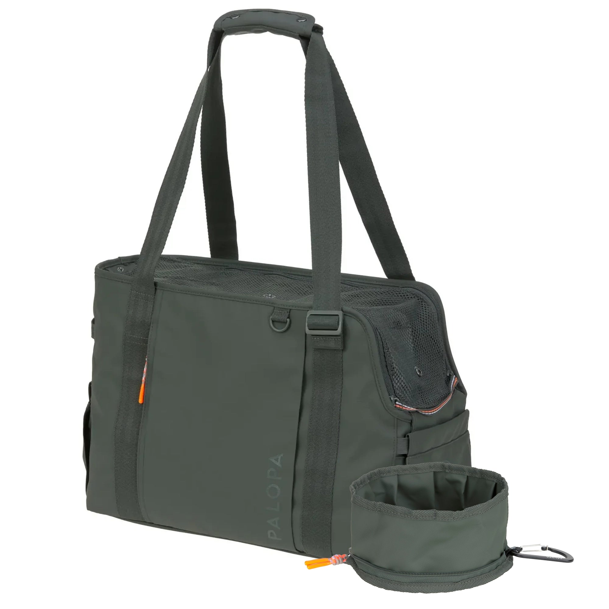 Das Set aus Hundetragetasche und Reisenapf in Dunkelgrün überzeugt mit einheitlichem Design, hochwertigen Materialien und optimaler Funktionalität.